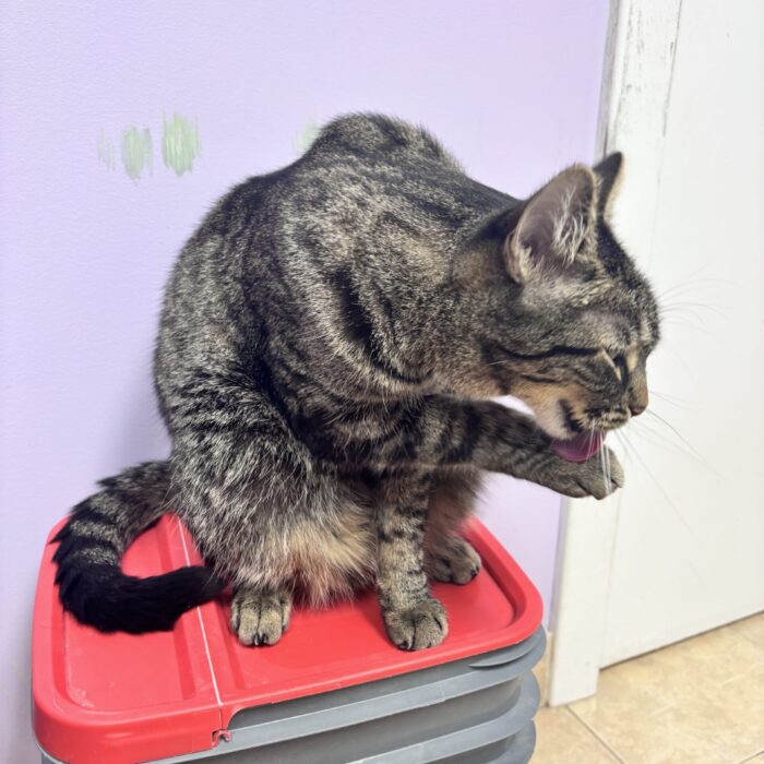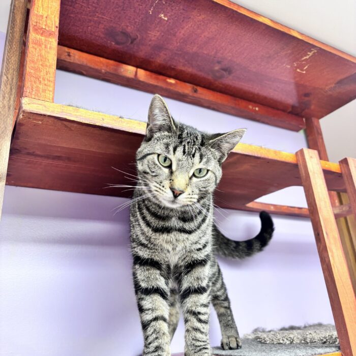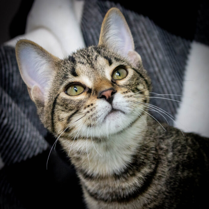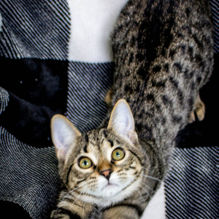 This is Kepler! He is one of three brothers who are so similar that even the staff can’t tell them apart sometimes. All three boys are super sweet, very friendly and love to chase toys. They will keep you entertained for hours with their playful antics!