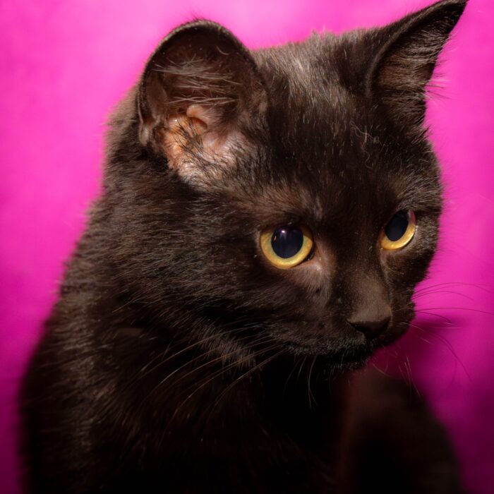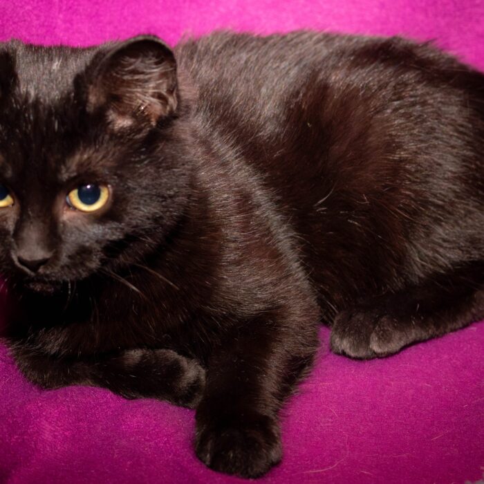 No, this is not a black hole, this is miss Raven! She is a sweet kitten who absolutely loves to cuddle. She may be dark on the outside, but her bright and sunny personality shines for everyone she meets!